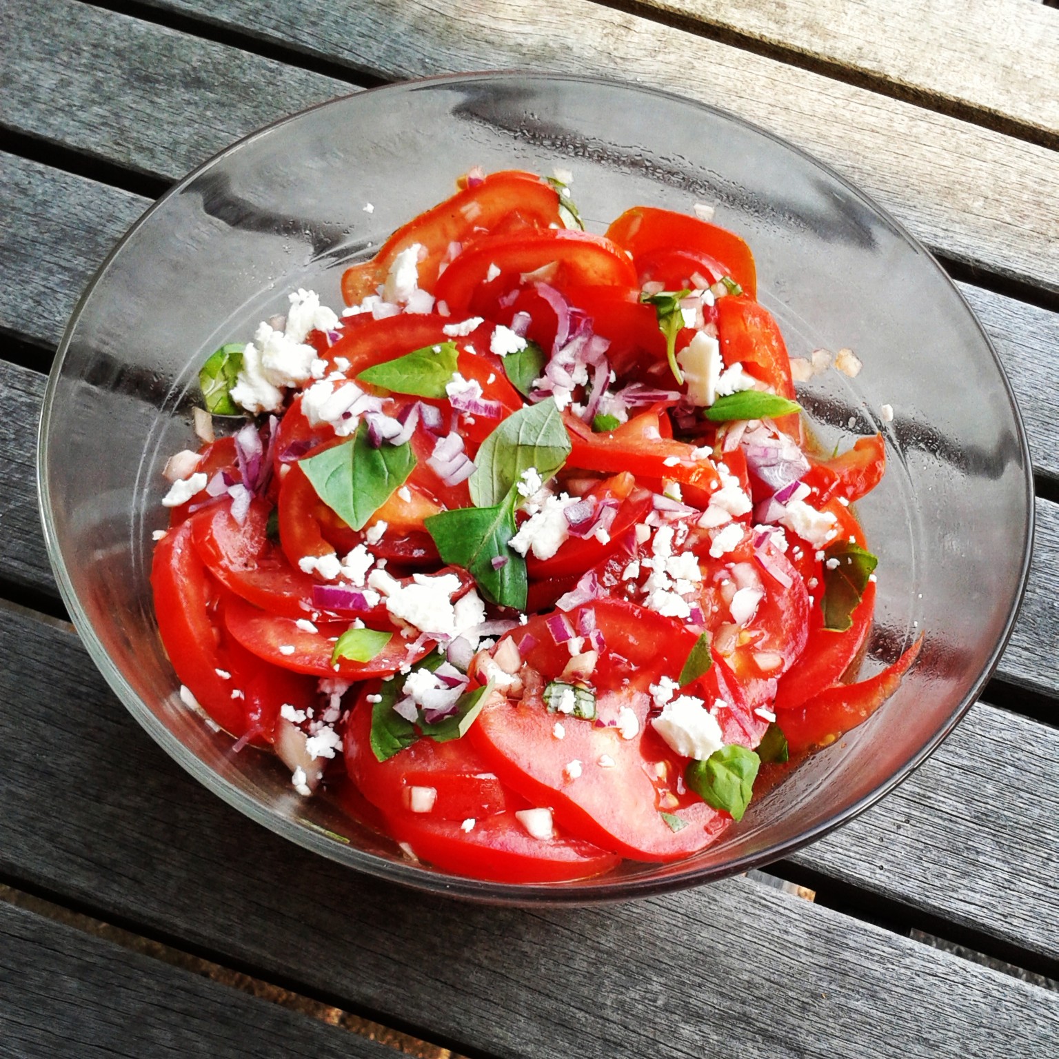- schenk de dressing over de tomaten