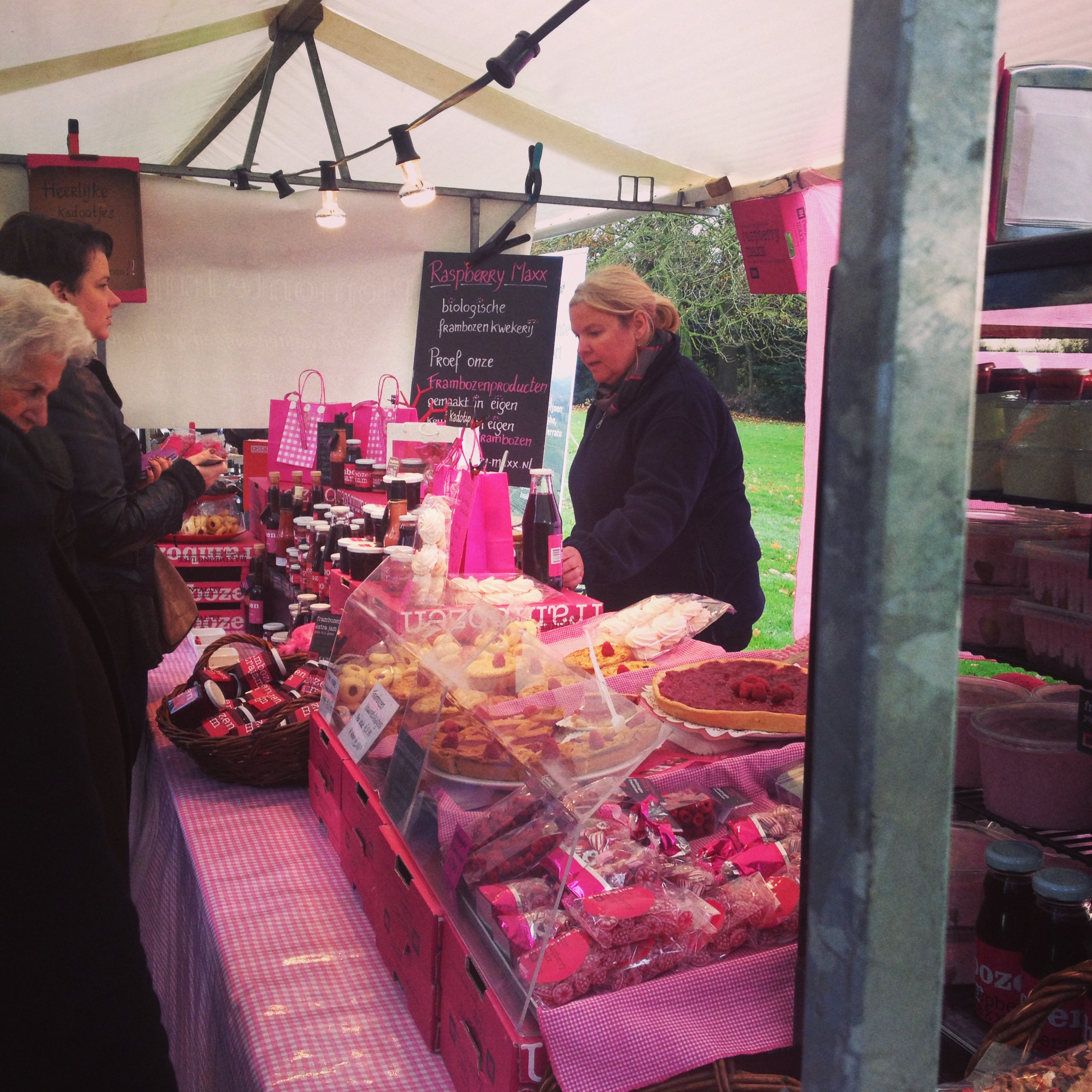 Je vindt er van alles; van biologische geitenkaas, glutenvrije paté, ambachtelijk desembrood, allerlei soorten kruiden & specerijen, bonbons van rauwe cacao tot biologische seizoensgroenten nét van het land. Daarnaast (en minstens zo belangrijk) hangt er gewoon een hele positieve & gezellige sfeer. Lekker slenteren dus over de markt terwijl je van elk kraampje wat kunt proeven. Elke maand zijn er vaak ook nieuwe kraampjes bij; zo was ik deze keer blij verrast om Raspberry Maxx te zien. Dit is de producent van de allerlekkerste biologische frambozen in Nederland (vind ik tenminste); heerlijk zoet en vol van smaak.