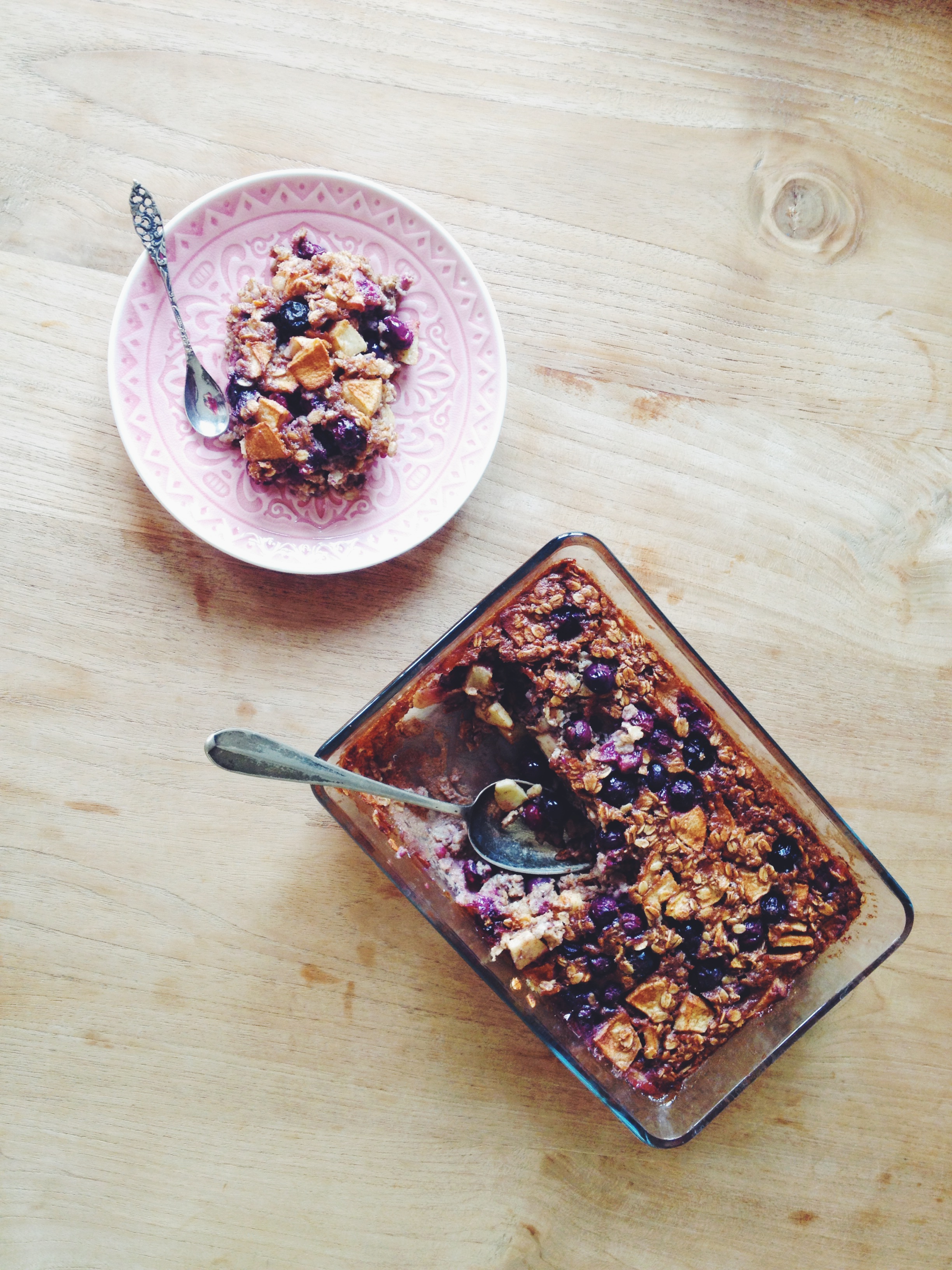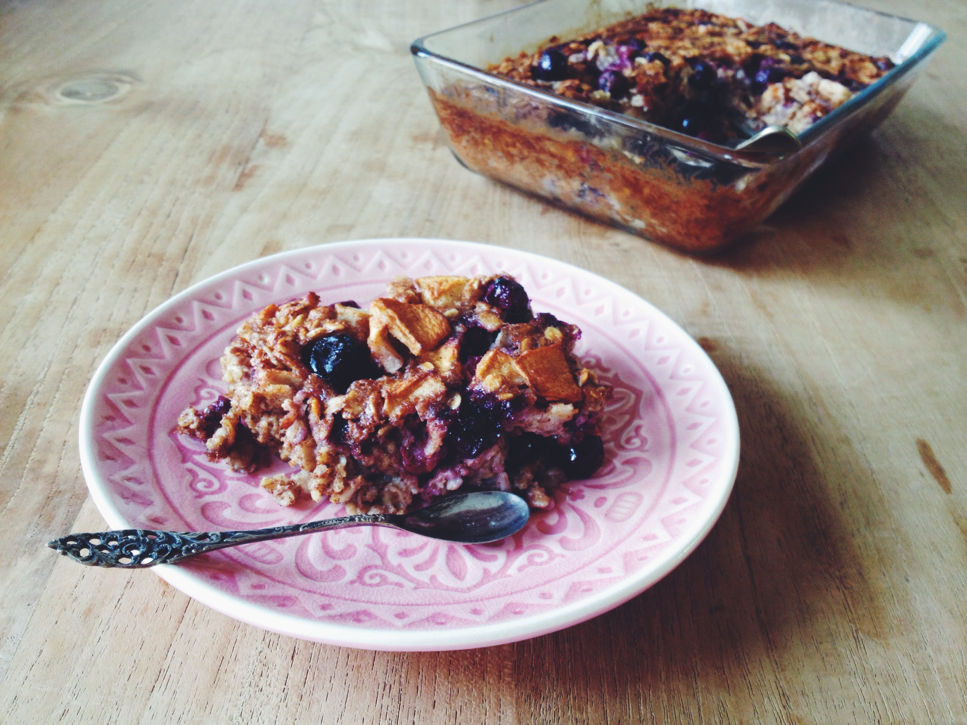 Op Amerikaanse foodblogs kom ik vaak ‘baked oats’ tegen; oftewel havermout gebakken in de oven. Op mijn ‘to do’ lijstje stond dan ook al een tijdje het bedenken & maken van een eigen variant hierop. Het is er eindelijk van gekomen!