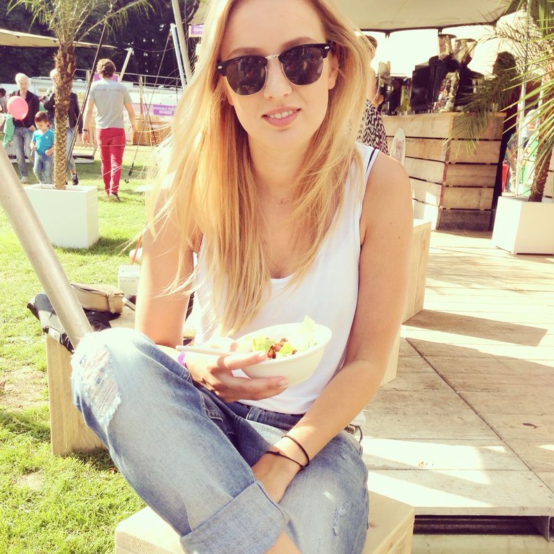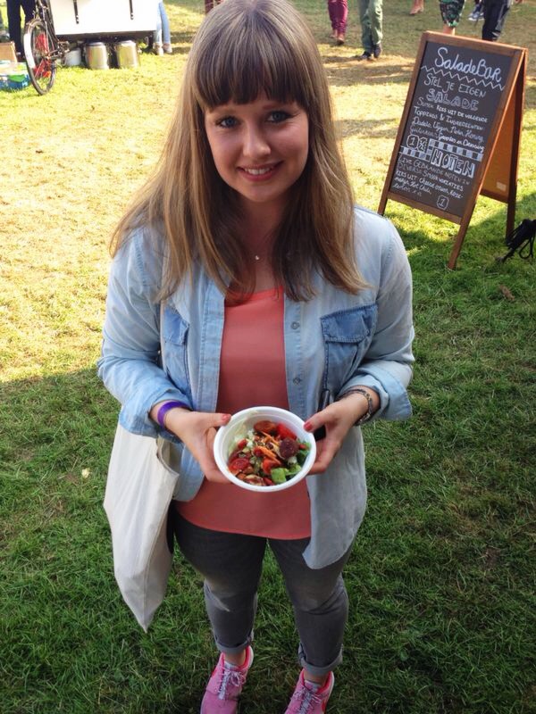 Gisteren bezocht ik met mijn zus EkoTown; dit is een biologisch lifestyle festival dat plaatsvindt op 21 en 22 juni in het Amsterdamse Bos. Het festival terrein is ingedeeld in 6 verschillende ‘Plaza’s: Sprekersplaza, Sportplaza, Proefplaza, Kidsplaza, Boerenplaza en Muziekplaza. Het enige nadeel is de forse entreeprijs; voor een dagticket betaal je €29,50. Al met al vond ik het dat zeker waard; je krijgt echt waar voor je geld. Ik kwam in de eerste plaats voor de lezingen van de gastsprekers en om inspiratie op te doen (en een beetje te netwerken uiteraard). Mijn zusje en ik begonnen ons EkoTown avontuur met een heerlijke groene superfood smoothie gemaakt door Jesse van der Velde. Daarna hebben we het terrein verkend. Er hing een hele fijne & relaxte sfeer. Overal zag je mensen genieten in de zon op grote zitzakken of hooibalen. Je kon van alles proeven: crackertjes met notenpasta, gedroogd fruit, Lovechock, Yogi thee, rauwe energierepen, groentechips en ga zo maar door. Ook kregen we een zakje met ‘festival mix’ met daarin rozijntjes en rauwe noten; yumm! Bij Sportplaza kon je gratis bootcamp- of yogalessen volgen en bij Proefplaza kon je meedoen aan workshops zoals brood bakken of smoothies maken. Om 15.00 was het tijd voor de eerste lezing die ik graag wilde bezoeken: Miss Natural ging in gesprek met Geiske de Ruig (over onder andere anti-aging en voeding), Yvonne van Stigt (over Paleo) en Vera van Haren en Claire van den Heuvel van Bluebelle Foodworks (over voeding en kinderen). Super interessant om te horen wat deze dames te vertellen hadden! Na de lezing hadden we trek dus besloten we op zoek te gaan naar iets lekkers en dat was natuurlijk niet zo moeilijk op dit festival! Overal vond je kleine gerechtjes voor een kleine prijs. We besloten een speltbroodje met bio kip en truffelmayo te delen. Daarna snel door naar de volgende lezing van niemand minder dan Amber Albarda. Ik vind haar boeken echt top en was dan ook erg benieuwd naar haar verhaal. Haar lezing was, zoals ik al had verwacht, erg inspirerend en interessant. Ze had ook heerlijke gezonde lekkernijen meegenomen om uit te delen. Daarna was het tijd om even te relaxen (op een hooibaal ;)) in de zon bij het podium (waar overigens de hele dag fijne muziek werd gemaakt!), met een koud glas kokoswater. We sloten onze dag af met een zelf-samengestelde salade met daarin onder andere noten, geitenkaas, dadels, tomaatjes en een heerlijke honingdressing. Ga dus vandaag nog een kijkje nemen of zorg er volgend jaar voor dat je erbij bent; dit wil je niet missen!