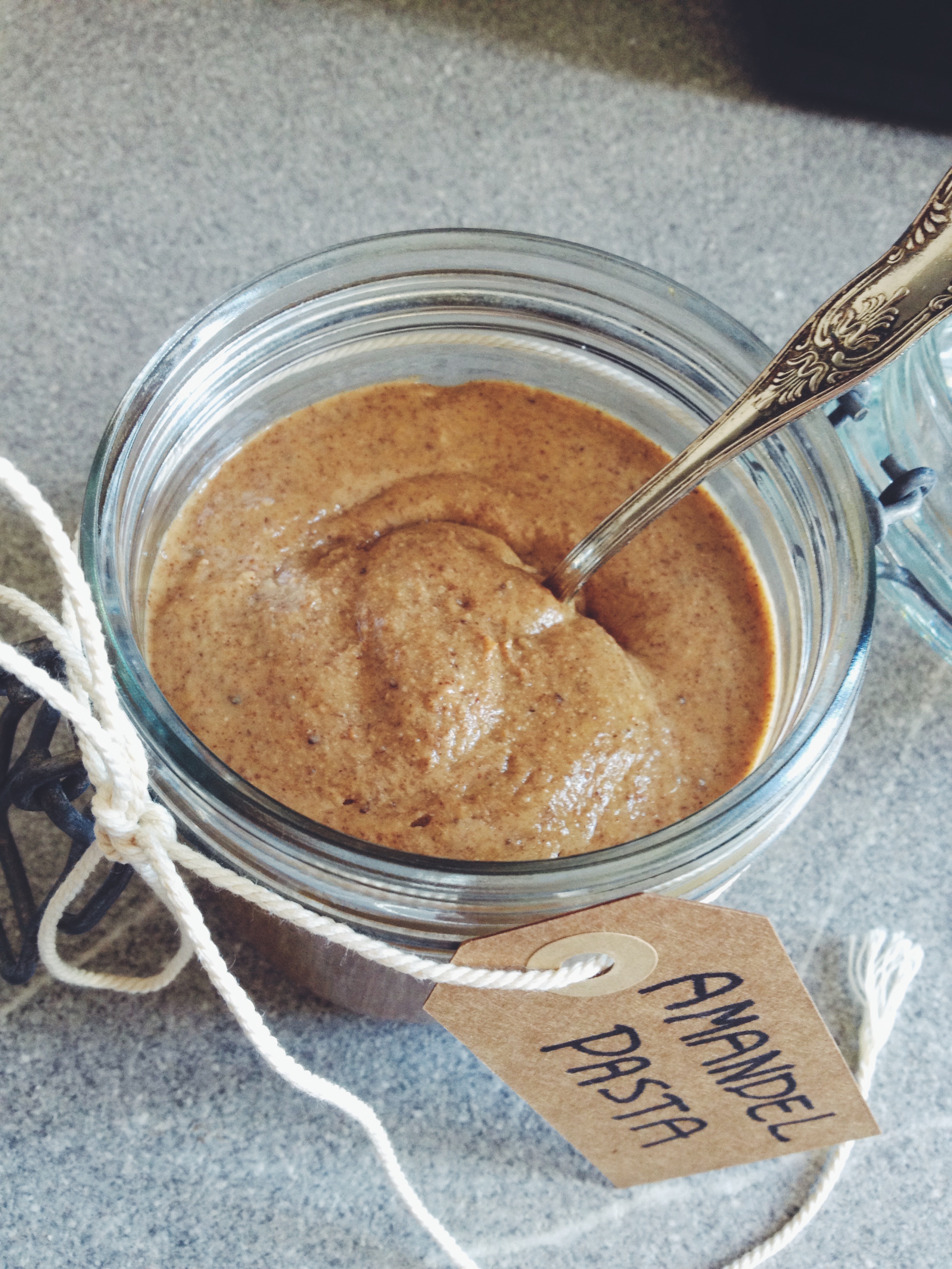 Wist je dat het echt super-easy is om zelf amandelpasta te maken? Amandelpasta is heerlijk op een zilvervliesrijstwafel of een spelt-zuurdesemboterham en het is mijn favoriete dip bij appelpartjes. Smeer eens een laagje op een boekweitwrap belegd met plakjes banaan en geraspte kokos: smullen! Het is trouwens ook een stuk goedkoper om zelf je amandelpasta te maken en daarnaast is de smaak is ook nog eens oneindig veel beter! Dus hup, de keuken in!