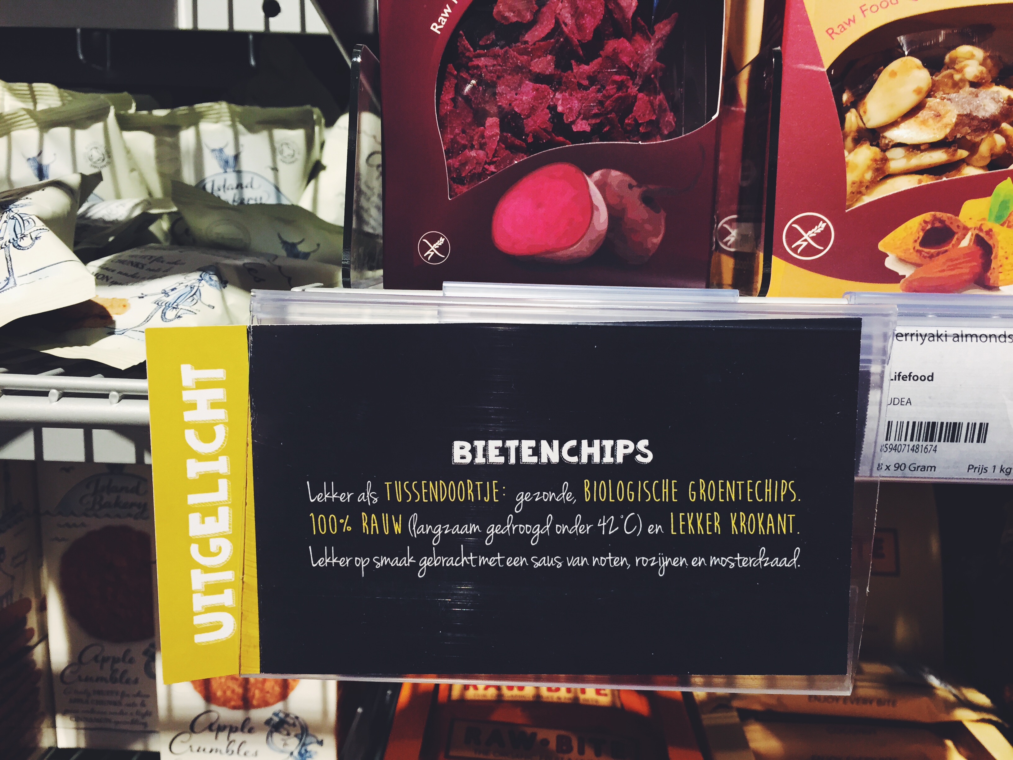 Je vindt ook veel bijzondere producten in de winkel zoals deze lekkere bietenchips