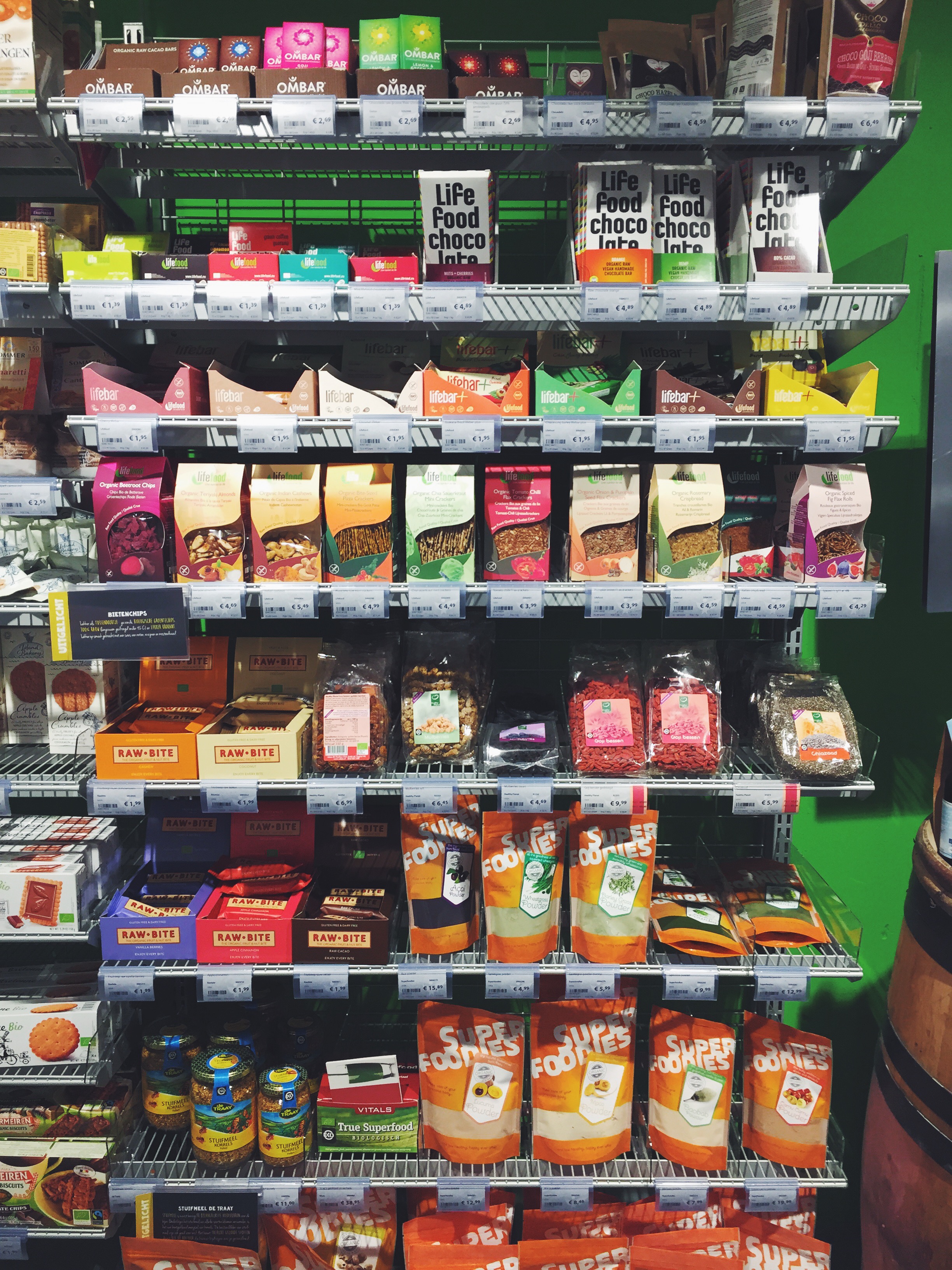 Nog een leuk weetje: studenten krijgen trouwens 10% korting op het assortiment, dus mocht je student zijn, vergeet dan niet je studentenpas mee te nemen! Wanneer je dieetbeperkingen hebt en gluten-, suiker-, koemelk- en/of zuivelvrij moet of wilt eten, dan kun je hier je hart ophalen. Ik sta vaak uren (tot irritatie van vriendlief ;)) te neuzen bij de schappen vol notenpasta, plantaardige zuivel, rauwe chocolade en de vele soorten kruidenthee. De ingrediënten voor de recepten die je op op mijn website vindt, kun je hier gegarandeerd vinden.