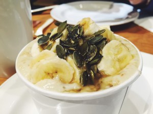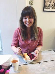En toen was het al weer tijd om naar huis te gaan! Als ontbijt heb ik nog genoten van de crumble van Livia’s en de CoYo die ik had gekocht bij Whole Foods en toen was het echt tijd om de sleutel weer in te leveren en richting vliegveld te gaan. We waren vrij vroeg opgestaan dus voor de vlucht hebben we nog wat gegeten op het vliegveld. Daar was ik weer verbaasd over hoe ver Londen al is qua gezonde voeding. Ze hadden er verschillende soorten havermout op de kaart staan; dat kon zelfs met plantaardige melk worden klaargemaakt. Echt top!