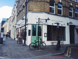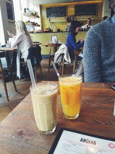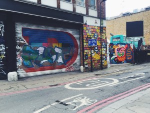 Daarna hebben we een stuk door Shoreditch gewandeld; wat een hippe wijk met een fijne sfeer! Bij Andina, een Peruaans restaurant hebben we lekkere smoothies gedronken. Dit is echt een supermooi en origineel restaurant; ik denk ook echt de moeite om hier te lunchen of te dineren maar daar hadden we helaas geen tijd meer voor. Vervolgens gingen we weer verder om de wijk te verkennen en kwamen we onderweg veel mooie graffiti en leuke pop-up stores tegen.