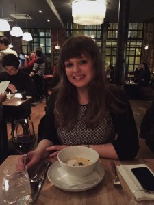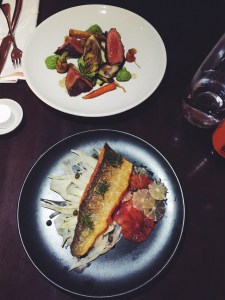 Ik wilde bewust niet teveel eten die dag omdat er ’s avonds als afsluiting van onze City-trip een etentje bij Jamie Oliver’s Fifteen gepland stond. Ik wilde hier al heel lang heen omdat ik mega Jamie Oliver fan ben en het ook een heel goed initiatief vind. Roy had er ook super veel zin in! Vooraf lazen we gemengde recensies maar we hebben hier gelukkig heerlijk gegeten! Vooraf had ik een bisque van krab en Roy krokante varkenswang met appel en gepocheerd ei. Als hoofdgerecht had ik lam met spelt en boerenkool en Roy stoofvlees met aardappelpuree en cheddar. Roy had nog ruimte voor een toetje en koos voor chocolademousse met bloedsinaasappel waar ik ook wat van heb meegesnoept. Echt comfort-food ten top! Helaas hebben we Jamie Oliver niet gespot 😦