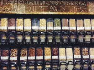 Maandagmiddag was het zover; eindelijk ging mijn droom in vervulling! 😉 Na ons bezoek aan het immens grote paleis hadden we flinke trek gekregen dus als eerste gingen we lunchen in het grote foodcourt van de Whole Foods in Kensington (en iedereen weet dat je nooit boodschappen moet doen op een lege maag; laat staan in de Whole Foods..). Ik koos een salade van het super uitgebreide salade buffet een een flesje Unococo kokoswater en Roy ging voor iets van het warme buffet. Als toetje hebben we ijsjes gescoord zonder zuivel & geraffineerde suiker op basis van cashewnoten; en lekker dat ze waren!! Na deze stevige bodem was ik klaar om me in het avontuur te storten! Omdat ik eigenlijk alles wilde zien om nieuwe producten en trends te spotten ben ik maar op de eerste verdieping begonnen en zo alle gangpaden en verdiepingen doorgegaan. Ik heb uiteindelijk best een bescheiden hoeveelheid producten in mijn mandje geladen (mijn vriend was trots op me ;)).