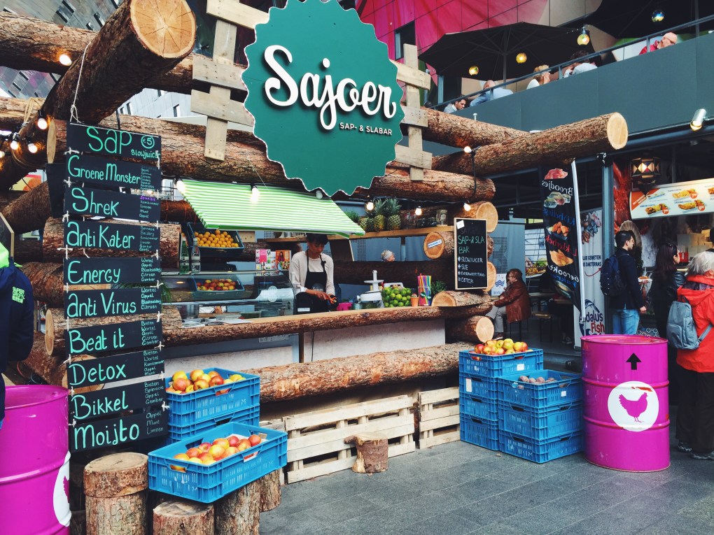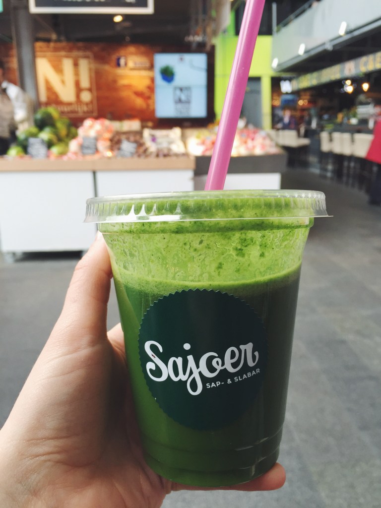 In de Markthal vind je ook Sajoer: een kleurrijke sap- en saladebar. Ze maken hier de heerlijkste slow-juices & salades. Ik koos voor Groene Monster met boerenkool, appel, spinazie, citroen, selderij, gember, peterselie & komkommer; een heleboel plant-power & vitamientjes dus!