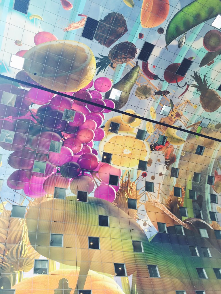 Daarna was het tijd om Rotterdam verder te verkennen (lees: shoppen ;)) en de Markthal te bekijken. De Markthal is de eerste overdekte markthal van Nederland. Het is een indrukwekkend gebouw vol kraampjes die de lekkerste dingen verkopen zoals verse vis, goede kwaliteit vlees, kazen & groenten net uit de grond. Erg leuk om zoveel enthousiasme voor pure en ambachtelijke producten bij elkaar te zien.
