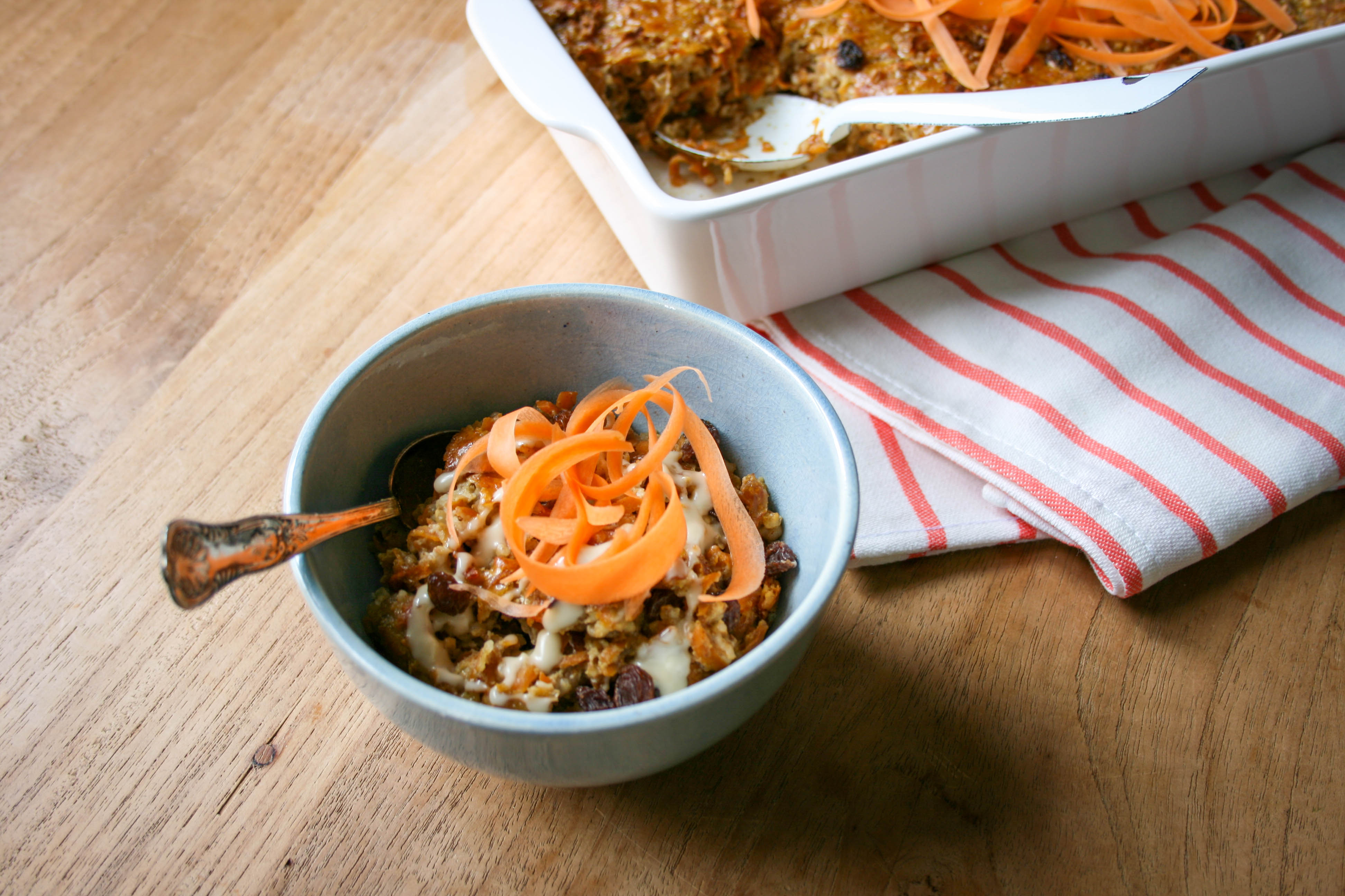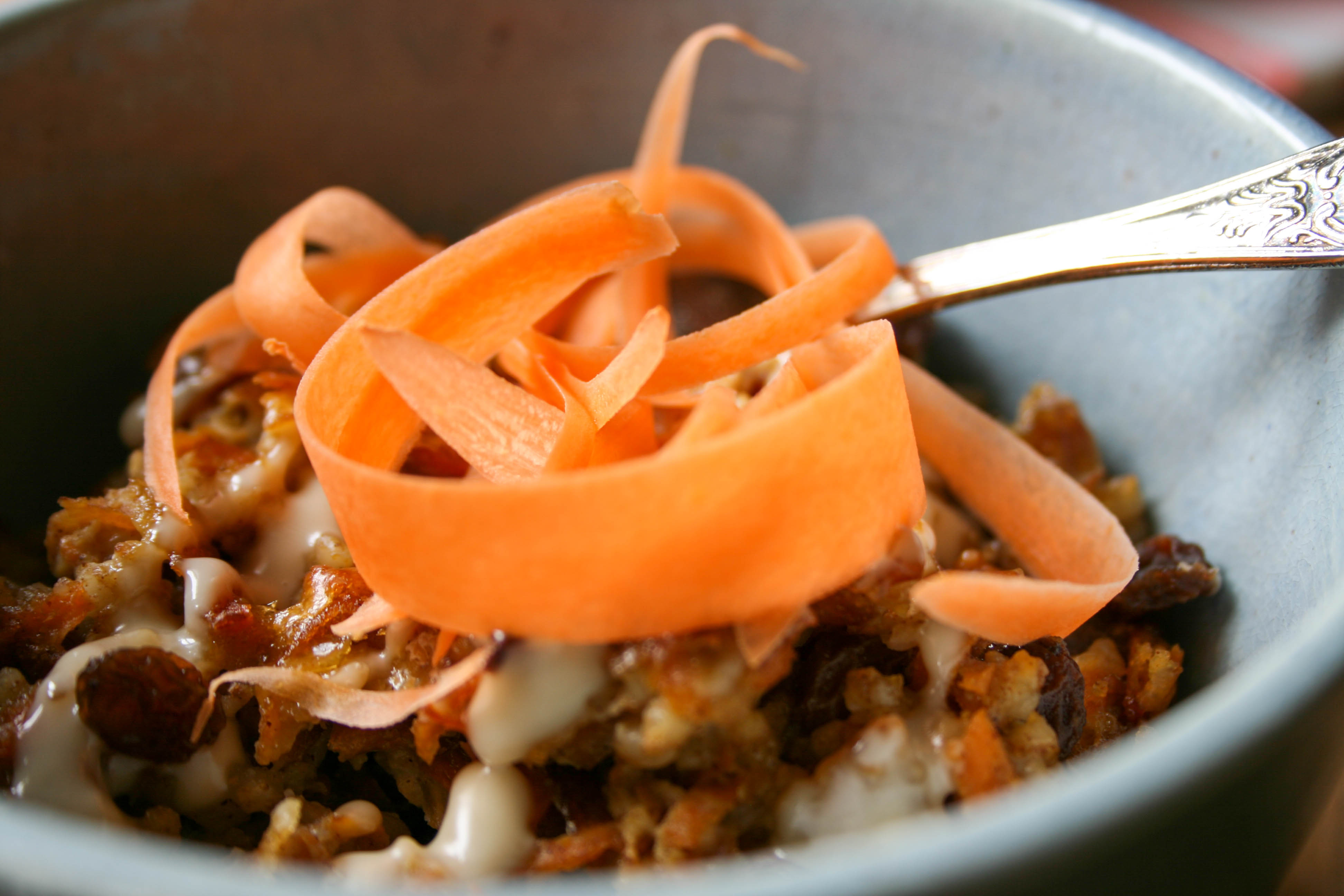 - ter garnering: toppings als ahornsiroop, extra geraspte wortel, rozijntjes, notenpasta, nootjes, pitten of geroosterde kokos