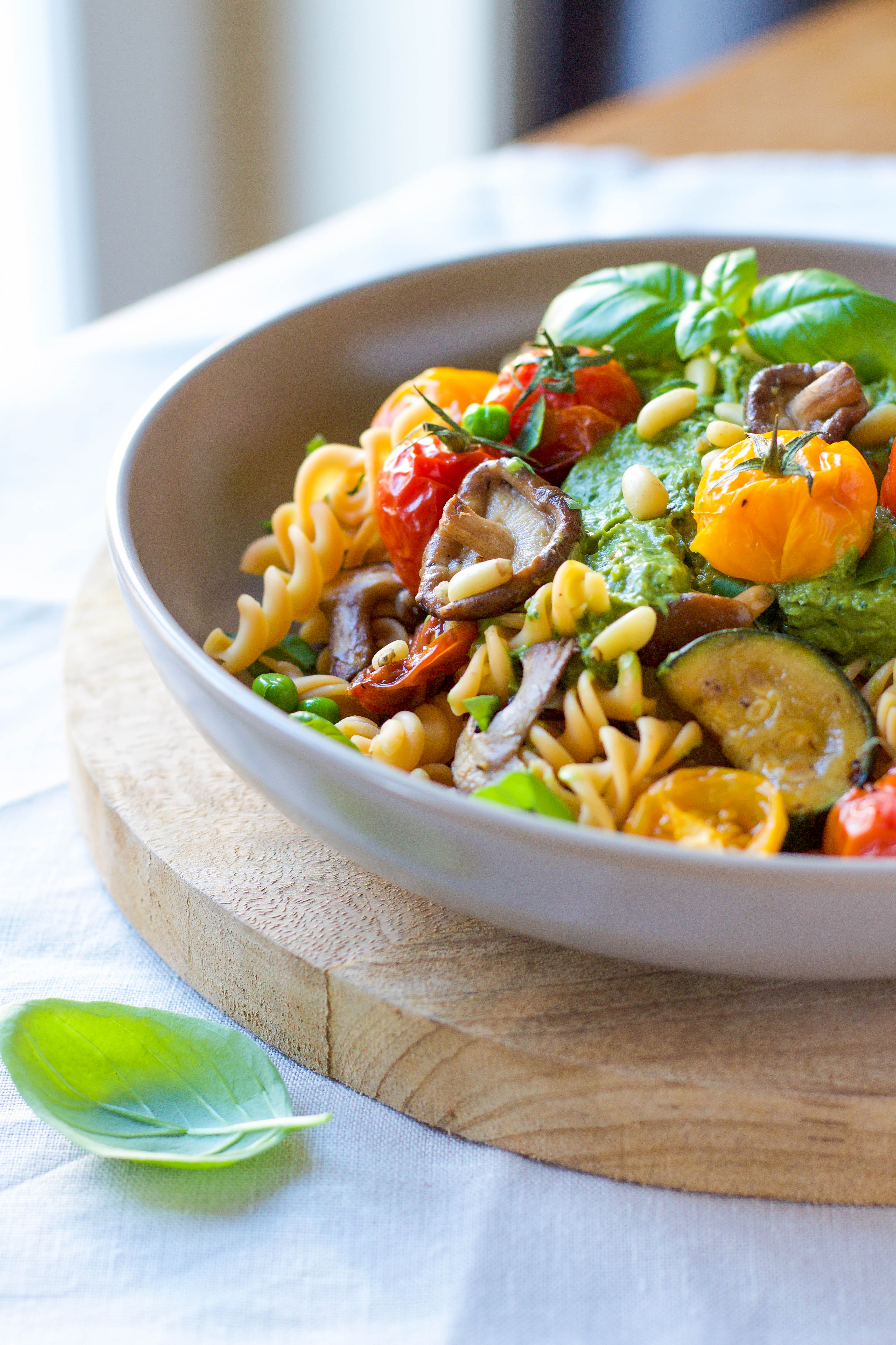 - Vegan of zuivelvrij? Vervang de kaas in de pesto dan door cashews of extra pijnboompitten en wat edelgist of gebruik een kant-en-klaar potje vegan pesto.