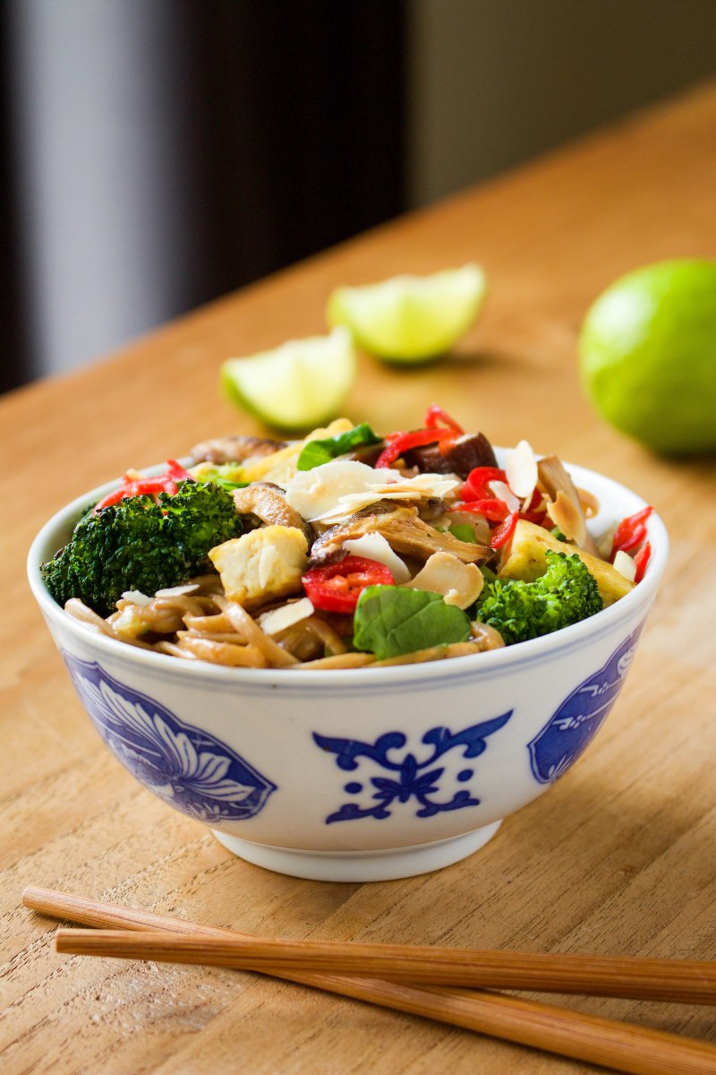 Boekweit noodles met romige miso-amandelsaus