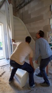 - De nieuwe (loodzware!) trap plaatsen
