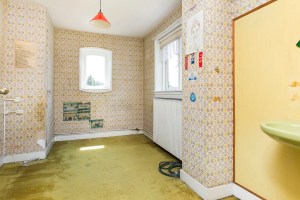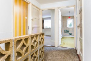 Hieronder zie je op de foto’s van de makelaar in welke staat we het huis kochten. In de jaren ’70 is er een verbouwing gedaan inclusief prachtige bruine schrootjesplafonds, stenen blokken op de overloop, elke kamer een ander kleurig behang en interessante vloerbedekking… De goede belichting op de foto’s zorgt er voor dat het huis ook nog wat positiever naar voren komt dan hoe wij het in werkelijkheid aantroffen 😉