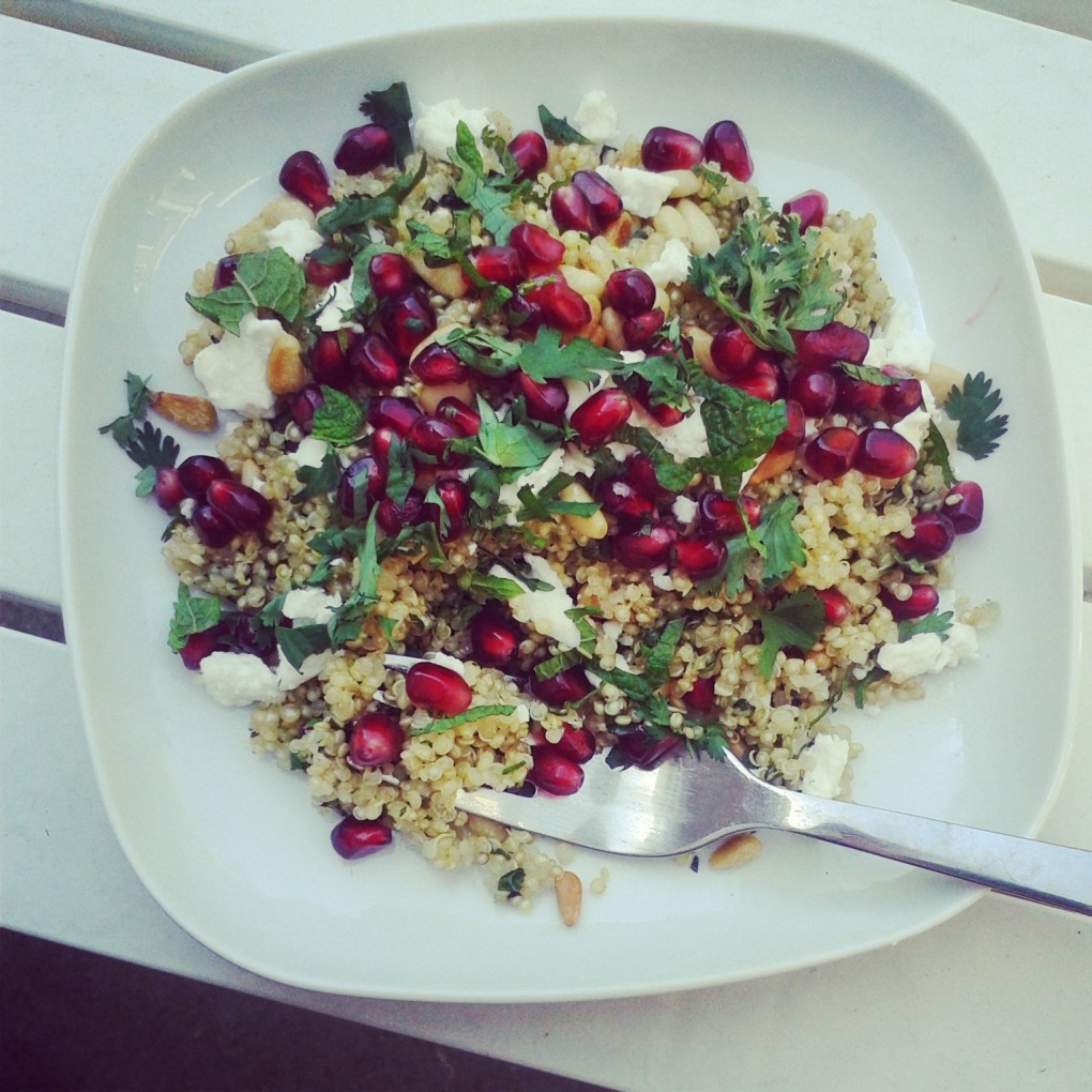 De verse kruiden in deze salade zijn daarnaast ook nog een erg gezond. Ik maak in dit gerecht gebruik van een flinke dosis koriander. Dit kruid werkt ontstekingsremmend, ontgiftend (het bindt zware metalen), bacterie- en schimmel remmend en het zou het cholesterol kunnen verlagen. De munt en koriander combineren heerlijk met de quinoa, de zoete granaatappelpitjes en de zilte feta. Granaatappel is trouwens ook erg gezond; vol antioxidanten die weer goed zijn ter voorkoming van welvaartsziekten zoals kanker en hart & vaatziekten. Vol gezonde plant-power dus deze salade! Lees Meer